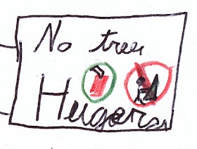 The banner the bi-plane was towing read "No tree Hugerrs" with what looks like a green circle with an axe head in a tree stump. Next to that was the universal sign for prohibited over a person hugging a pine tree. He beamed proudly and told me, "No tree huggers! Right Dad?" I didn't know if I should be proud or bust out laughing. So I just replied, "Yep!" while wearing a grin.