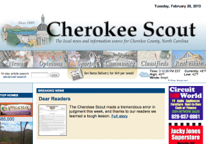 Scout’s publisher, David Brown, issued an apology this week to readers about Horne’s request, calling it a “tremendous error” to ask for the records. Brown turned down a request for comment, saying the paper’s owners, Community Newspapers Inc., in Georgia, asked him not to talk about the situation.