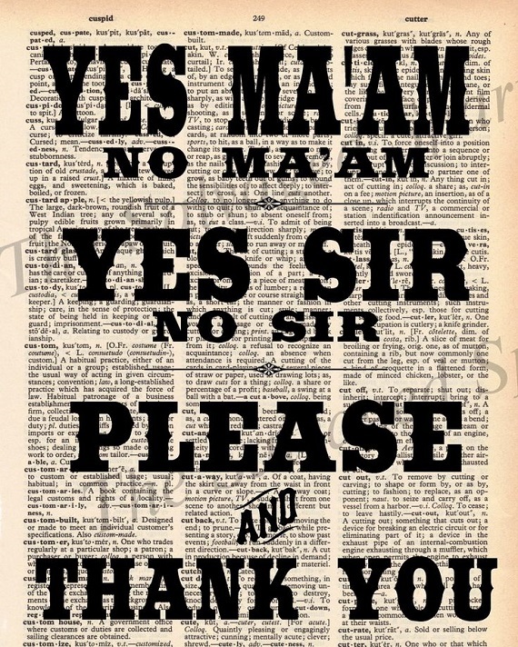 And the child who had momentarily forgotten his manners had better instantly reply with “yes, sir,” or “no, ma’am.” The child can also consider it a good day if the adult didn’t include a resounding thump as part of this exchange.