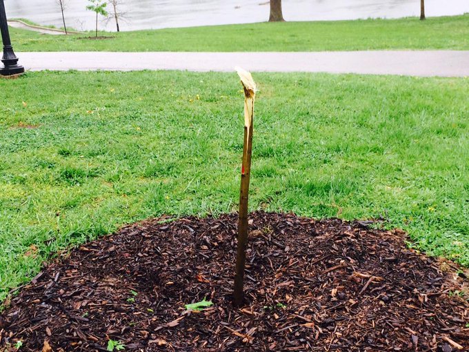 This tree, a sapling, was purchased by the Black Caucus of the American Library Association in Chicago. It was dedicated in January-Wabash Memorial Park on Saturday to Michael Brown, the unarmed 18-year-old shot and killed by a white police officer in the summer.