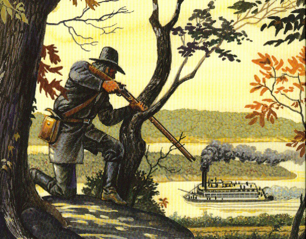 Jack Hinson was not a firebrand or a man eager for war – and for good reason: He owned over 1,200 acres and many slaves (p34) in Stewart County, near the village of Dover, inside the notch that forms the northern border of the state of Tennessee, along the Cumberland River. He called his home Bubbling Springs. As a matter of prudence, if not inclination, he befriended General Grant (p24) and other Union officers; he opposed secession (p56); and in the summer of 1862, he emancipated his slaves – who nevertheless chose to remain on his plantation (p141).