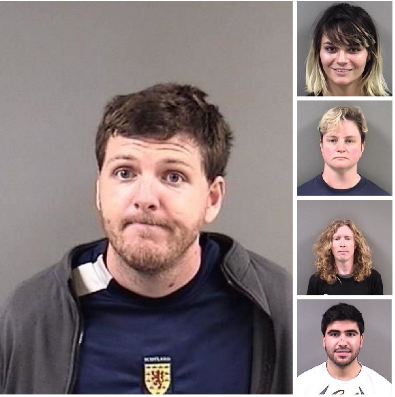 Four of the five people identified were arrested for carrying a "banned weapon."